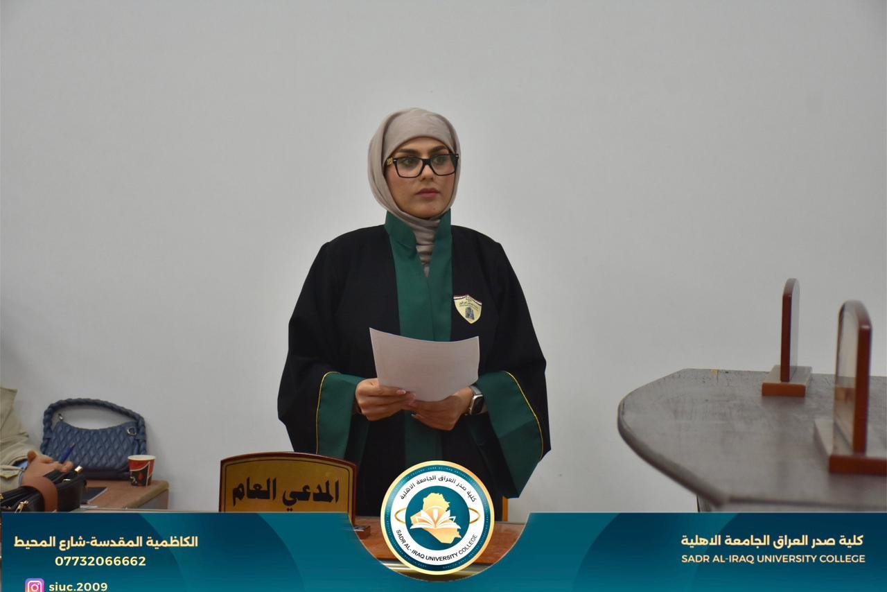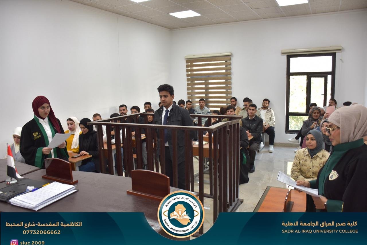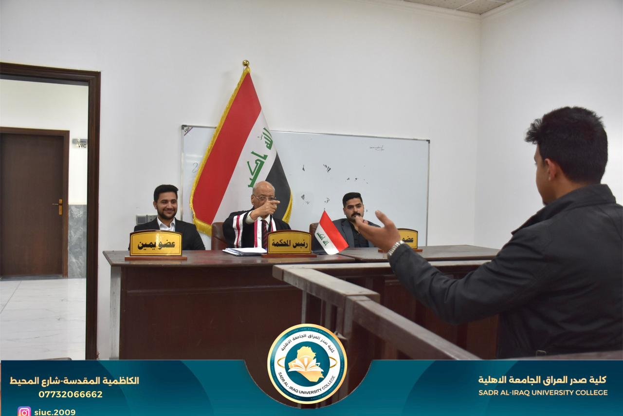 لقد حرصت كلية صدر العراق على تدريب طلبة قسم القانون على إجراءات التقاضي امام المحاكم المدنية والجزائية عن طريق درس المحكمه الافتراضية الذين يقوم عليه اساتذة أكاديمين مشهود لهم بالكفاءة . وقضاة مارسو العمل القضائي عشرات السنوات وقد اتضح المستوى العالي لطلبتنا اثناء التدريب الصيفي في المحاكم أذ شهد بذالك جنيع قضاة ومحامي المحاكم التي تدربوا فيها