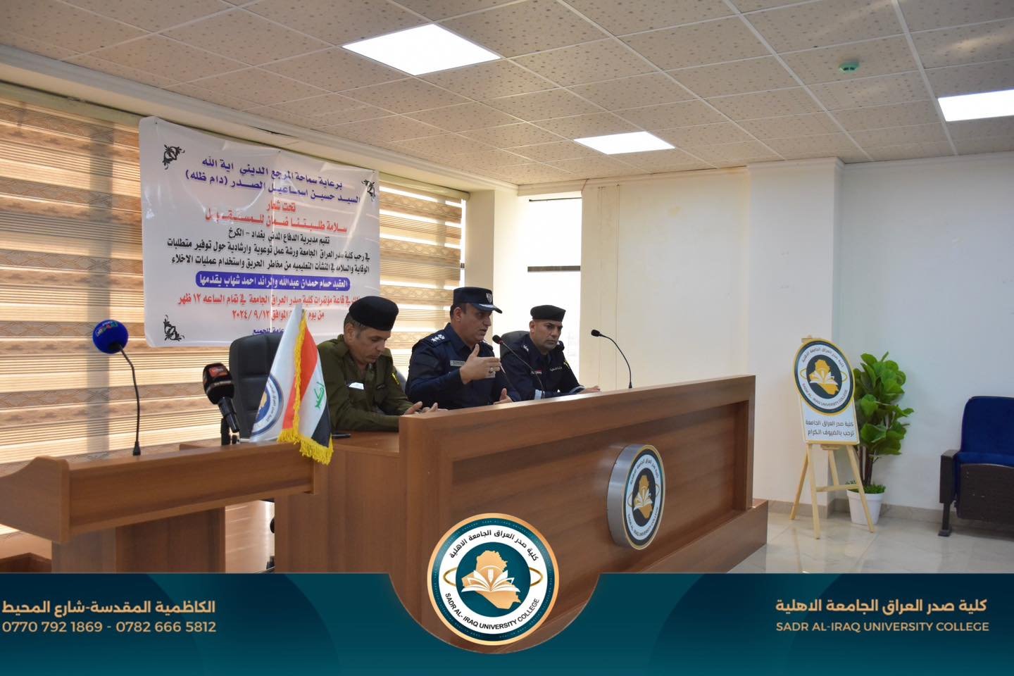 وتأتي هذه الورشة في إطار سعي مديرية الدفاع المدني لتعزيز الوعي بأهمية السلامة العامة، وحرص كلية صدر العراق الجامعة على توفير بيئة تعليمية آمنة للطلاب والكادر التدريسي، وفق أعلى معايير الأمن والسلامة المتبعة.
