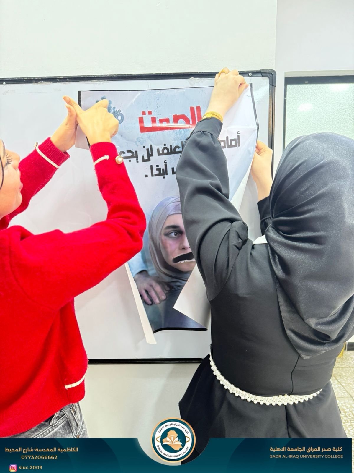 برعاية كلية صدر العراق الجامعة، وضمن برامج شعبة شؤون المرأة في تعزيز الوعي المجتمعي، نُفِّذت فعالية توعوية موسّعة تهدف إلى مناهضة العنف ضد المرأة ضمن حملة (16) يوم العالمية